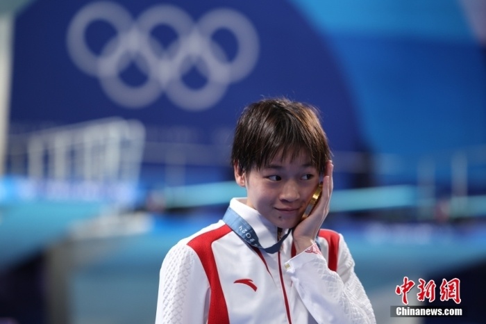 在全运会上,她帮助广东队夺得了女子跳水团体金牌。登上领奖台时,全红婵低头久久凝视着金牌,不停地抚摸着它。这并非她夺得过的最高规格比赛的冠军,但因为来自低谷期,所以显得尤为珍贵。